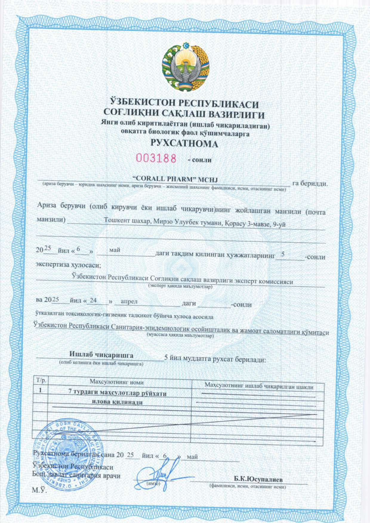 Mаҳсулот cироп ва саше кўринишида бўлиб, ички азоларга мутлақо